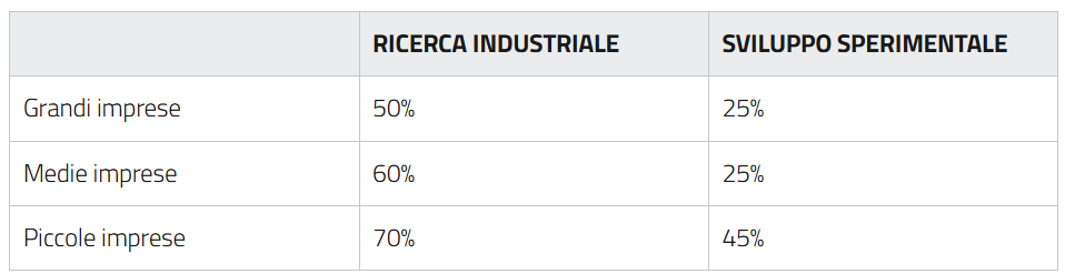 Il contributo regionale, per un massimo di € 300.000,00  a progetto, sarà concesso a fondo perduto, secondo le seguenti misure percentuali massime, applicabili a seconda della dimensione dell’impresa:
